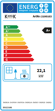 Das Energielabel für Einzelraumfeuerstätten ist ab dem 01.01.2018 für alle Anbieter Pflicht. Dadurch erkennen Sie auch als technisch weniger versierter Verbraucher klar und deutlich welcher Holzofen oder Kamineinsatz effizient und damit technisch auf dem neuesten Stand ist. Wichtig: Aktuell gibt es auf dem Markt nur vereinzelt Holzöfen oder Kamineinsätze mit A++. Dafür erfüllen die meisten die Anforderungen für A oder A+ was für ein Heizgerät wie den Kanuk Original 22 kW ohne automatische Brennstoffzufuhr und dem Naturbrennstoff Holz einen sehr guten Wert darstellt.